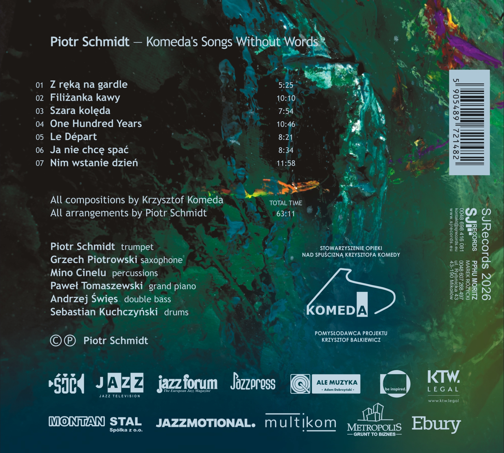The album is a live concert recording—the premiere performance of the material during the Love Polish Jazz Festival. Thanks to this, it preserves the energy of the moment, the organic sound, and the authenticity of collective music-making. Komeda’s Songs Without Words is a meeting of tradition and modernity, a tribute to one of Poland’s most important composers, and at the same time a personal, mature artistic statement by one of the leading trumpeters of the Polish jazz scene.